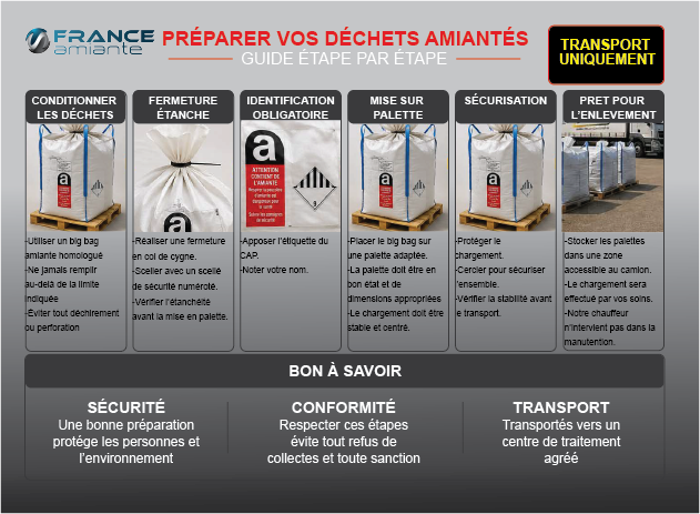 Les déchets amiantés doivent être entièrement préparés AVANT toute collecte